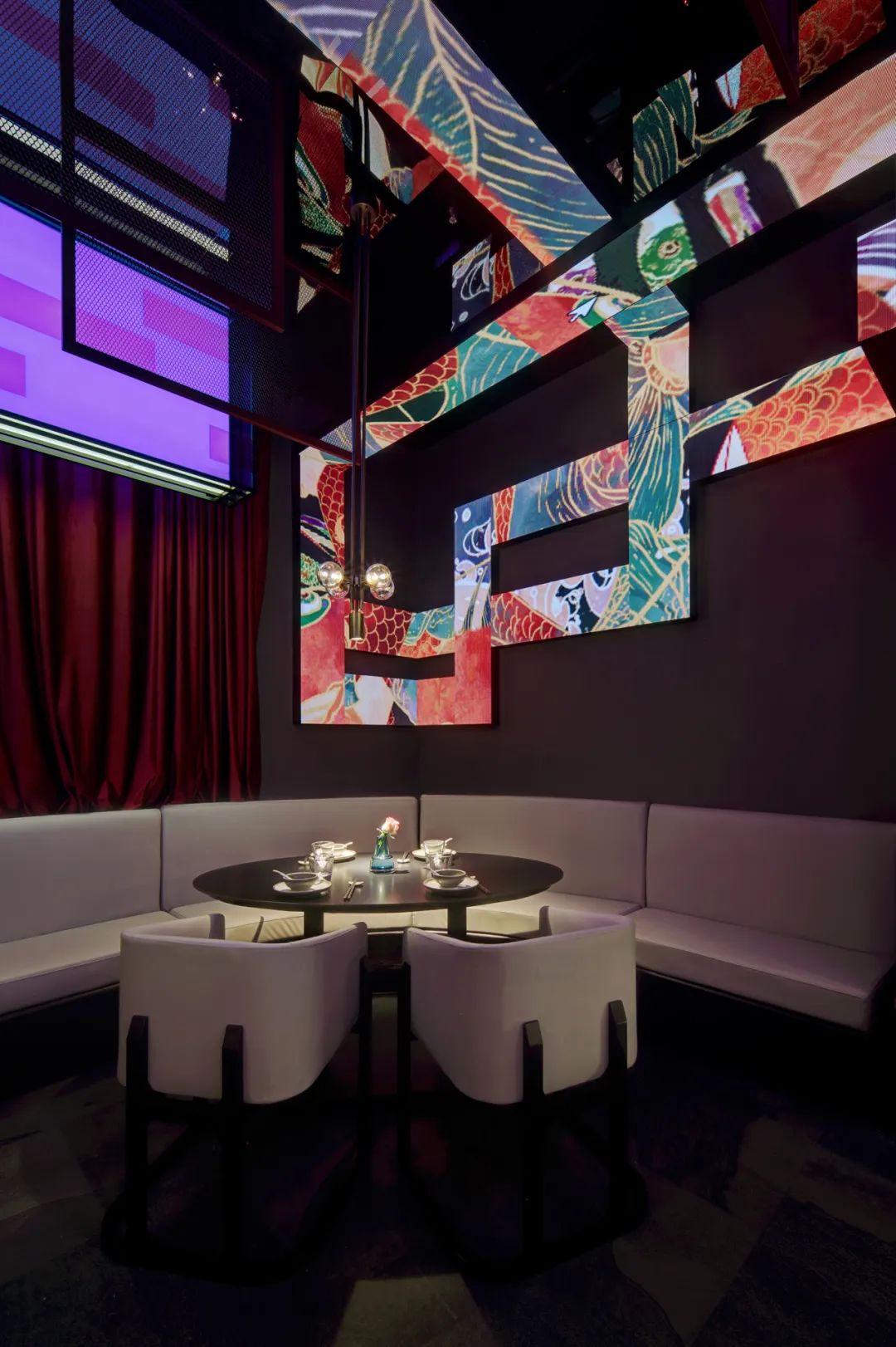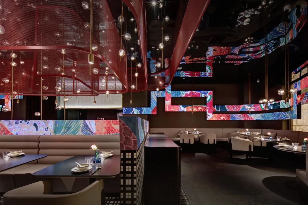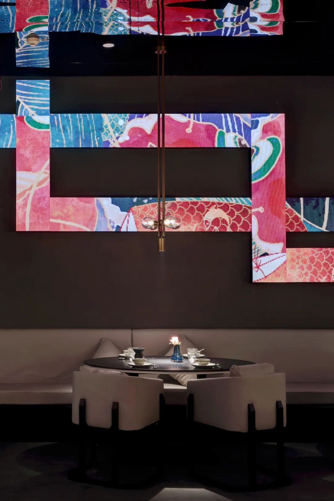 在文化上不断探索与创新的成都万象城,设计师将变幻莫测,趣味无穷的LED屏穿插引导动线的同时,形成围合空间。抽象的影像,颜色重新组织空间架构,与当地生活状态发生链接。