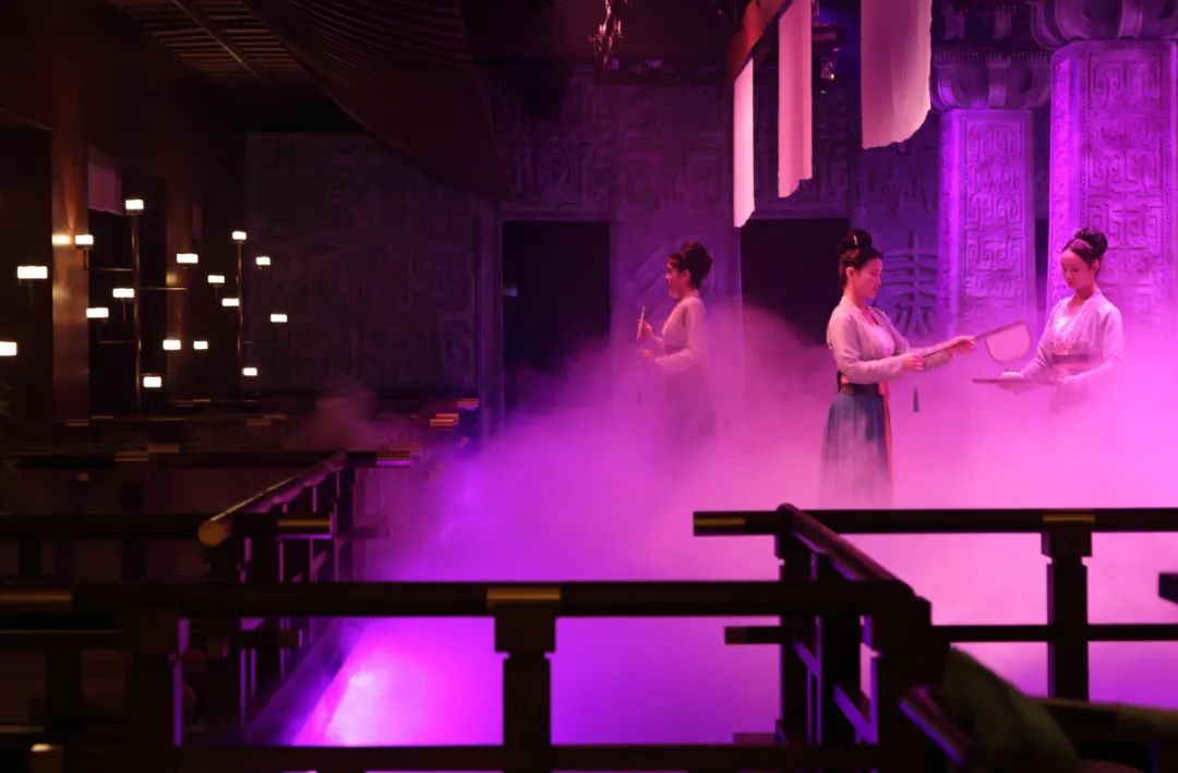 “相逢意气为君饮”,“落花踏尽游何处,笑入胡姬酒肆中”,“开琼庭以坐花,飞羽觞而醉月”“射者中,弈者胜,觥筹交错,起坐而喧哗者,众宾欢也”。一幕幕光影,【宫宴】铺展“剧场式筵宴”。