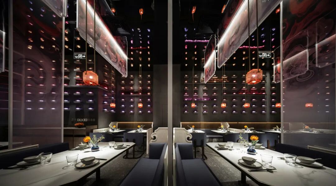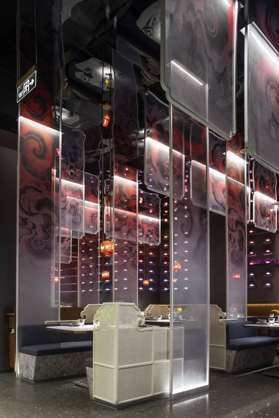 麻六记国贸首店,设计师以「上古洪荒,浩瀚川野」之苍莽,粗粝,激越,奔腾致敬川菜之源远流长。