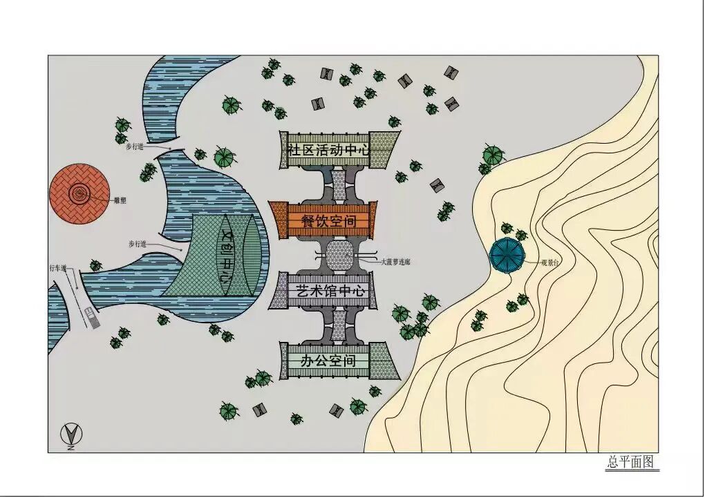 此设计项目所处的地理位置极为特殊,其位于山脚与水道之间的一片老工业厂区。这里曾经是工业生产的一方热土,此次的改造计划旨在将这片废弃的工业遗址进行全面的转化,打造成为一个集文化旅游展示、游客接待以及社区服务等在具体的设计规划中,本项目共有4栋厂房,包括餐饮中心,社区活动中心,艺术中心,办公空间,每栋厂房的建筑面积为1856平方米。此外,还有一座经过改扩建的锅炉房(改建为艺术中心)在岁月的长河中见证了时代的变迁与发展。其建筑面积为930平方米,以及一个名为“大菠萝玻璃水晶连廊”的独特建筑,面积为561平方米。项目的总建筑面积达到了8915平方米。