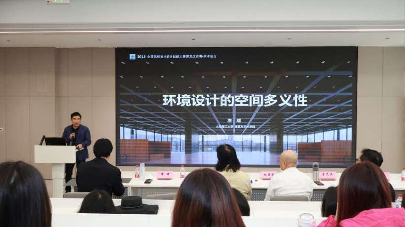 大连理工大学建筑与艺术学院原院长、二级教授、博导、教育部高等学校设计学类专业教指委委员、教育部高等学校建筑学类专业教指委委员、一级注册建筑师、黑龙江省教学名师唐建教授开展了题为《环境设计的空间多义性》的学术讲座,从重构人、建筑、环境与自然的关系的角度为师生带来一场精彩的学术盛宴。