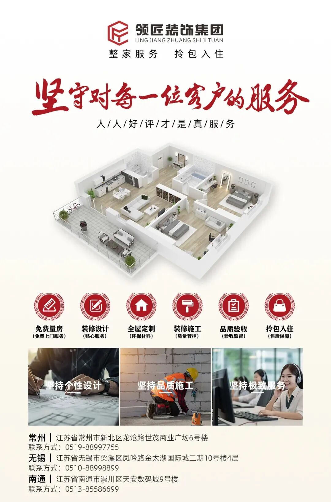 领匠装饰自 2017 年创立以来,始终坚守 “让家装变简单,让家更美好” 的使命,全力打造设计、施工、主材、辅材、家具、家电、售后一体化的整家服务,积极构建全产业链家装平台。发展至今,服务范围已覆盖常州、无锡、南通等苏南核心市场,服务业主数量突破一万户。