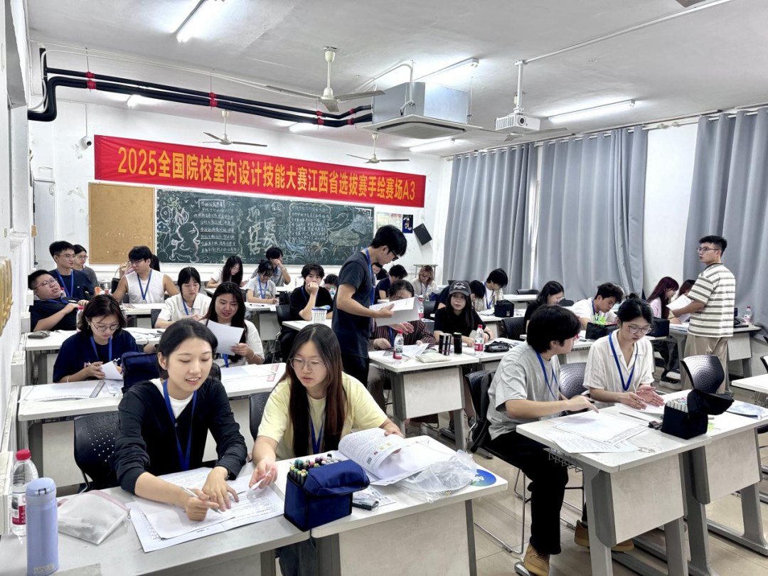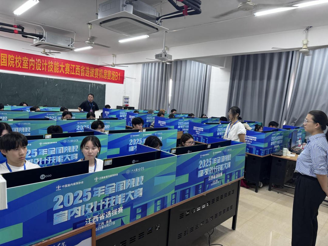 9月27日上午,2025年全国院校室内设计技能大赛江西省选拔赛在江西服装学院隆重举行。本次大赛由中国室内装饰协会主办、教育部职业院校艺术设计类专业教育指导委员会环境艺术设计类专业委员会联合主办,江西省室内装饰协会协办,江西服装学院承办。来自江西省中职、高职、本科院校的55支代表队,共计110名设计及相关专业学生有序参赛。大赛评选出的优秀选手将代表江西省参加11月在上海举行的全国总决赛。