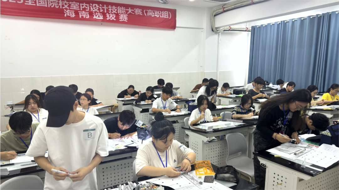 10月17-18日,2025年全国院校室内设计技能大赛海南省选拔赛在海南经贸职业技术学院成功举办。本次赛事由中国室内装饰协会、教育部职业院校艺术设计类专业教学指导委员会环境艺术设计类专业委员会联合主办,海南经贸职业技术学院承办,海南省室内装饰协会、海南捷诚装饰工程有限公司、广东华浔品味装饰集团海南有限公司协办。来自海南省多所院校环境艺术设计、室内设计等相关专业的20支队伍报名参赛。根据大赛安排,脱颖而出的优秀选手将代表海南省参加在上海举行的全国总决赛。