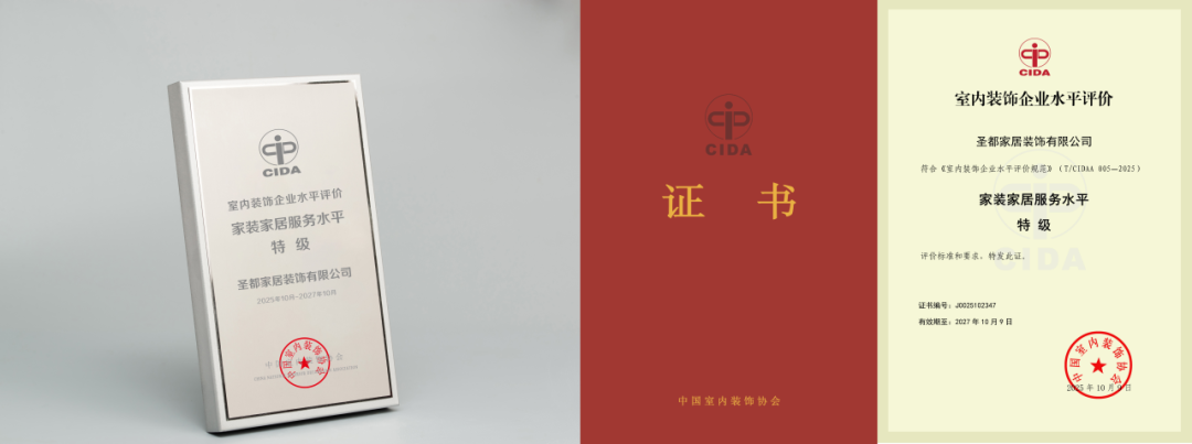 2025年11月,贝壳整装旗下“被窝整装”与“圣都整装”双品牌荣获中国室内装饰协会“室内装饰企业水平评价—家装家居服务水平(特级)”称号。