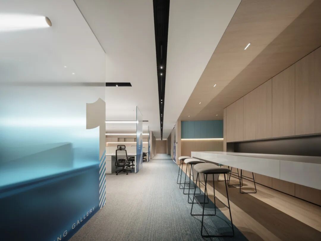设计从健康、人文关怀理念出发,结合企业科研属性,延展出“联合生命、无限生长”的主题概念。整个空间以功能性质分为三个主题:首层、二层为“能量基站”,六楼门诊部以“生命绿岛”为主题,七层实验室、办公区围绕“蓝色星河”展开。