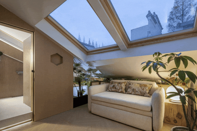 在改造过后,上方由设计师取名、邀请艺术家谢天提笔“望园”二字的牌匾映入眼帘,袅袅评弹之音又从内徐徐传来:姑苏城外寒山寺,夜半钟声到客船……回响于此,俨然一立体“苏式园林”,让人恍惚间穿越了时空。