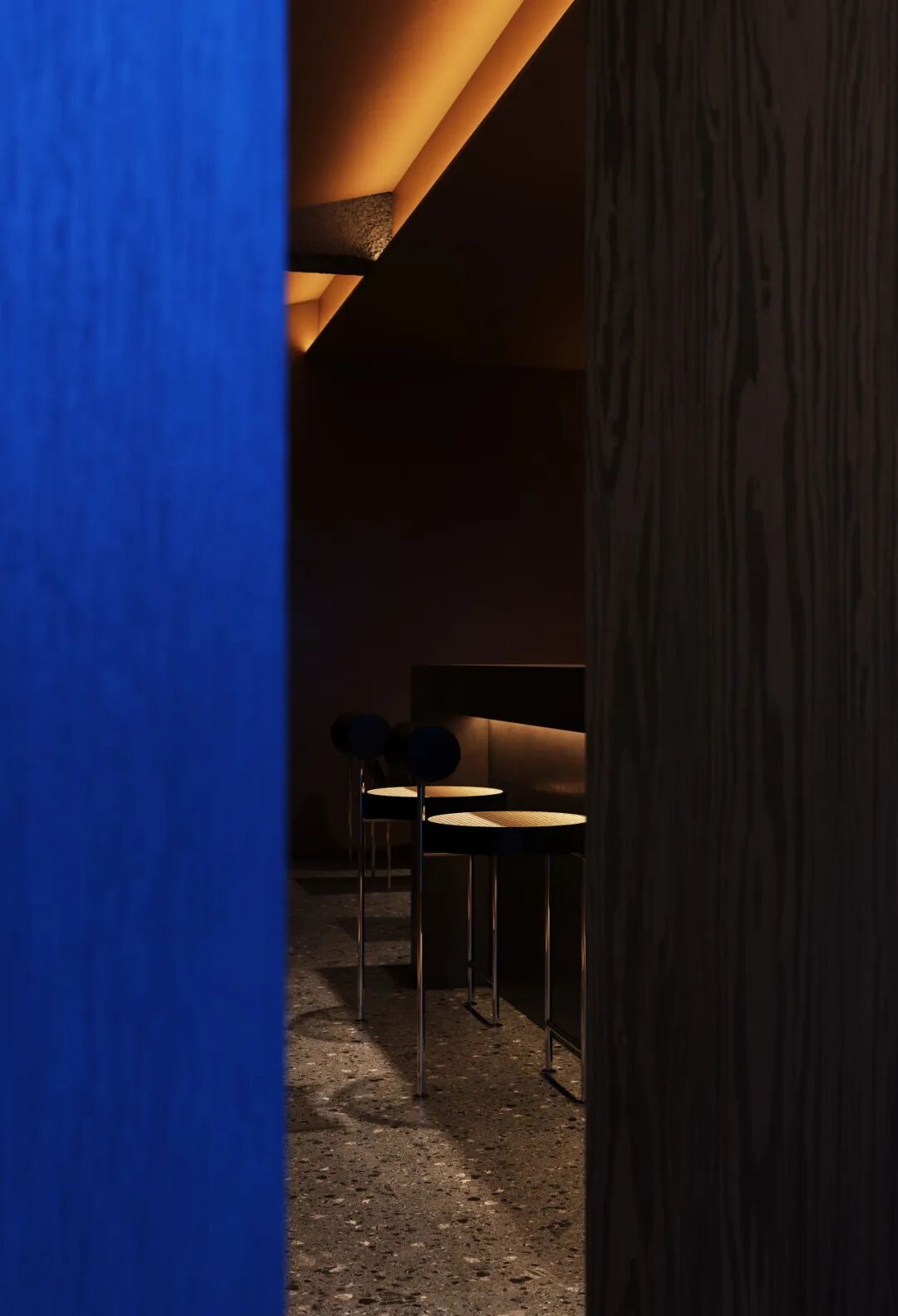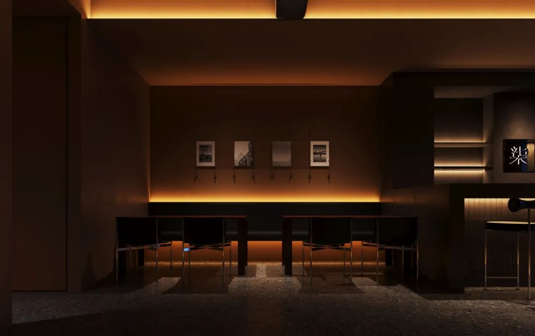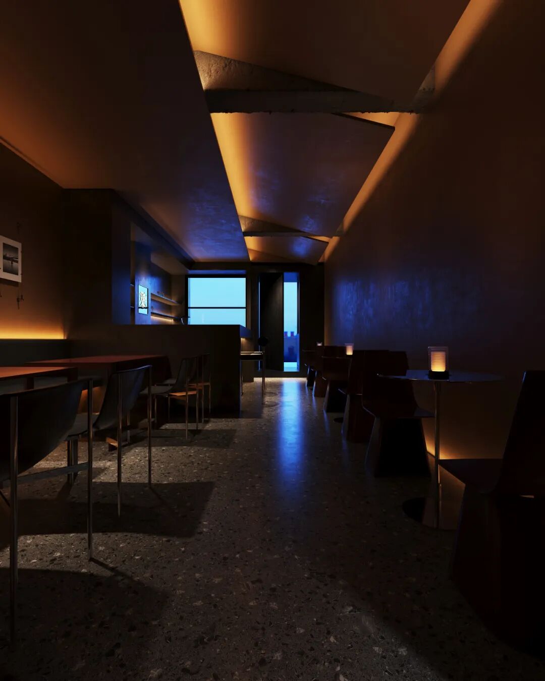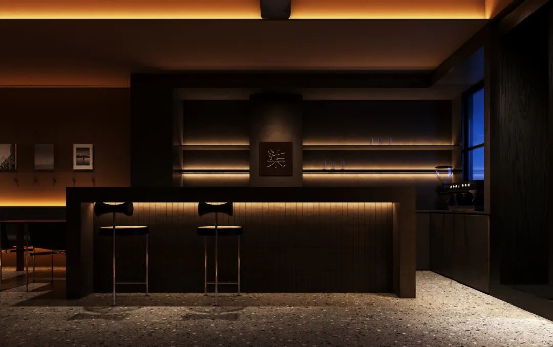 ”让空间成为盛放情绪的容器“整个店铺秉持简而不凡的设计逻辑,几何线条贯穿空间。恰当运用灯带和点状光源,将气氛由日里的馥郁咖啡香过渡轮转至夜间微醺沉溺的酒香。从房梁到墙面都采用了颇具质感的石材和肌理感艺术漆。当藏于背匿处的暖光打在斑驳的表面上,时间仿佛于此尽情流动又相对静止。街外的路人行色匆匆,步入其间却让人情不自禁放缓步调。齐晟认为,在商业空间中消费者的心情是不同于居家或者办公空间的。设计师需要捕捉更多的情绪状态,并由此提高体验阈值。大到整体空间的延展性,小到桌子的边缘,椅背的倾角,都是细节。而细节则构成了整个设计的完整性。