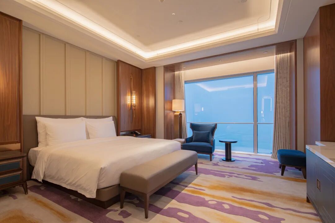 苏州国际会议酒店坐拥环秀湖旖旎风光,毗邻苏州高铁北站,酒店整体建筑俯瞰造型形同汉字“中”,寄予了“中国梦”的美好寓意,占地面积达246亩,建筑面积30.8万平米,拥有1518间客房和92个大中小型多功能厅及会议室,可全方位承办国内外政务、商务和学术等各类大型会议,兼容“酒店+庆典宴会+精品会展+政务接待”等多功能的会议中心综合体。