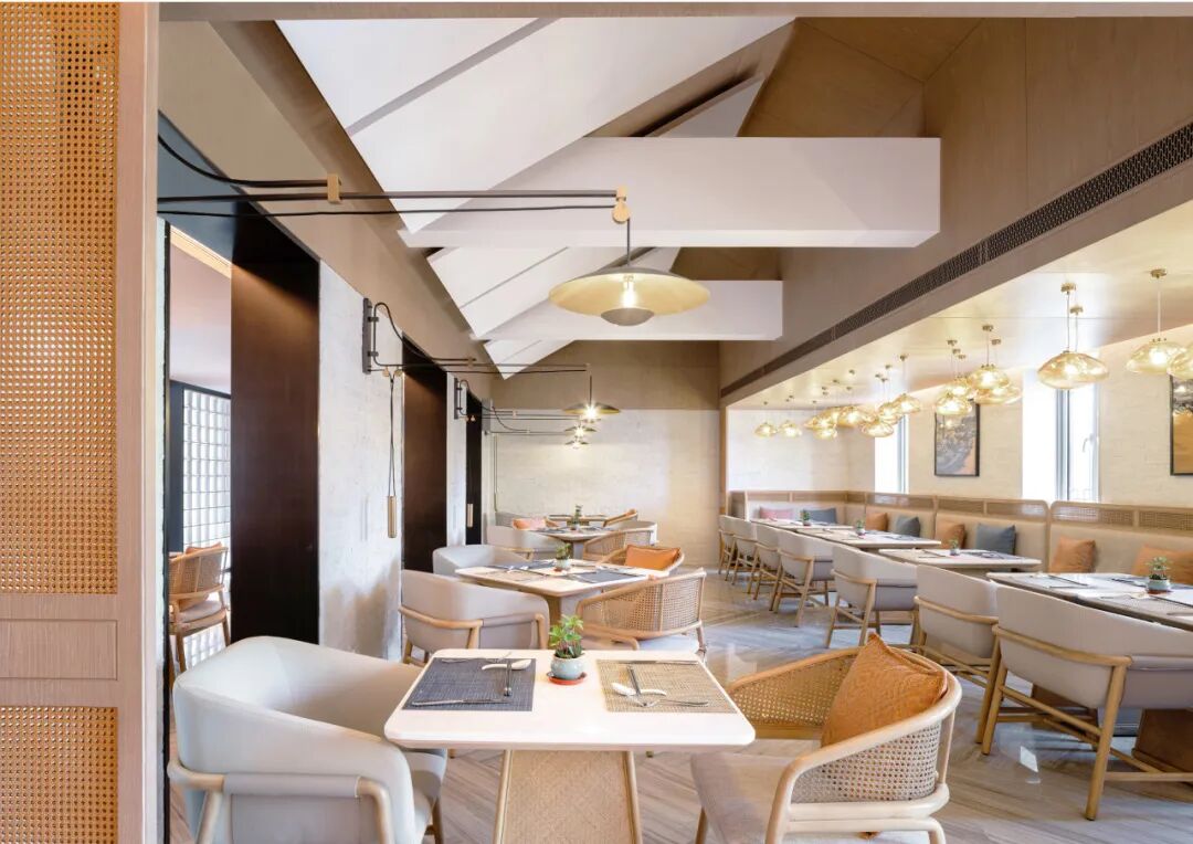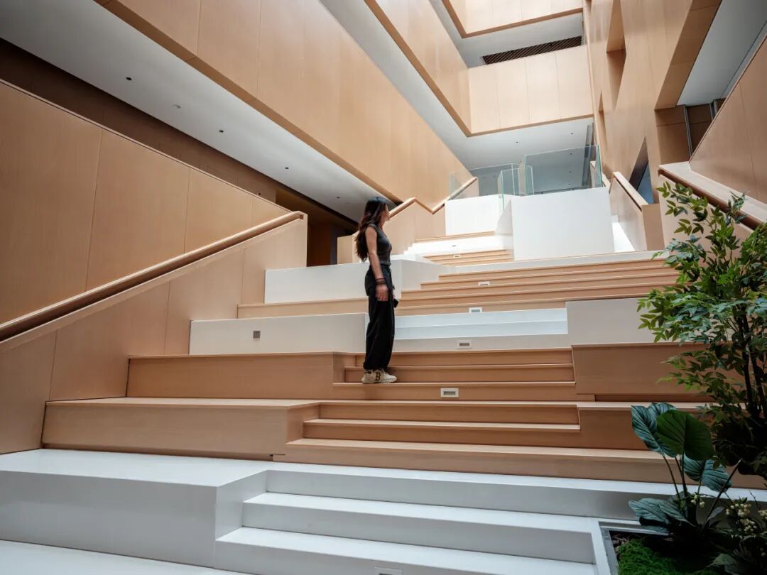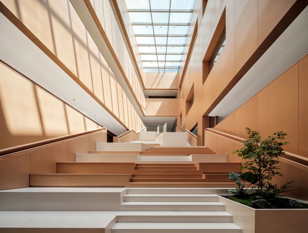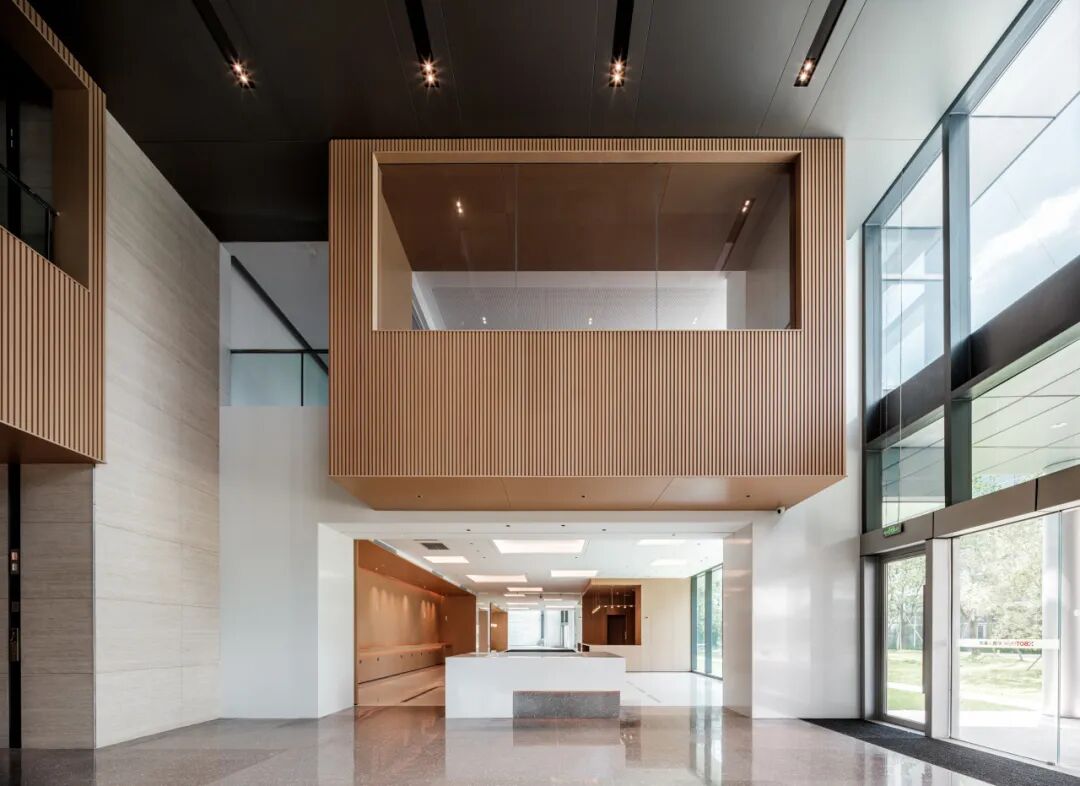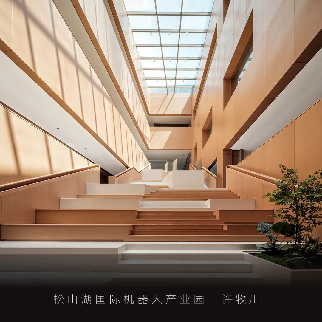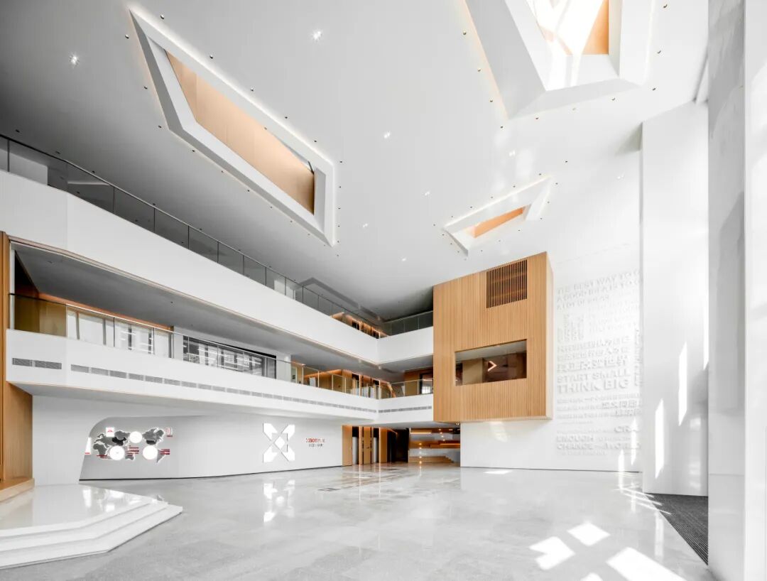 松山湖国际机器人产业园位于广东东莞松山湖,设计面积约28000平方米,整个园区作为一个孵化基地,设计以打造一个创意加速器为核心理念。通过玻璃、木材等材质及色彩突出空间层次,利用几何造型和光影视觉效果强调“共享”“创意”和“休闲”的空间特征,通过置入不同的共享功能来打造工作?生活?休闲一体化的空间体验。知识生产渗透于丰富的日常生活之中,设计新型模式的空间也重新定义空间设计的内核。