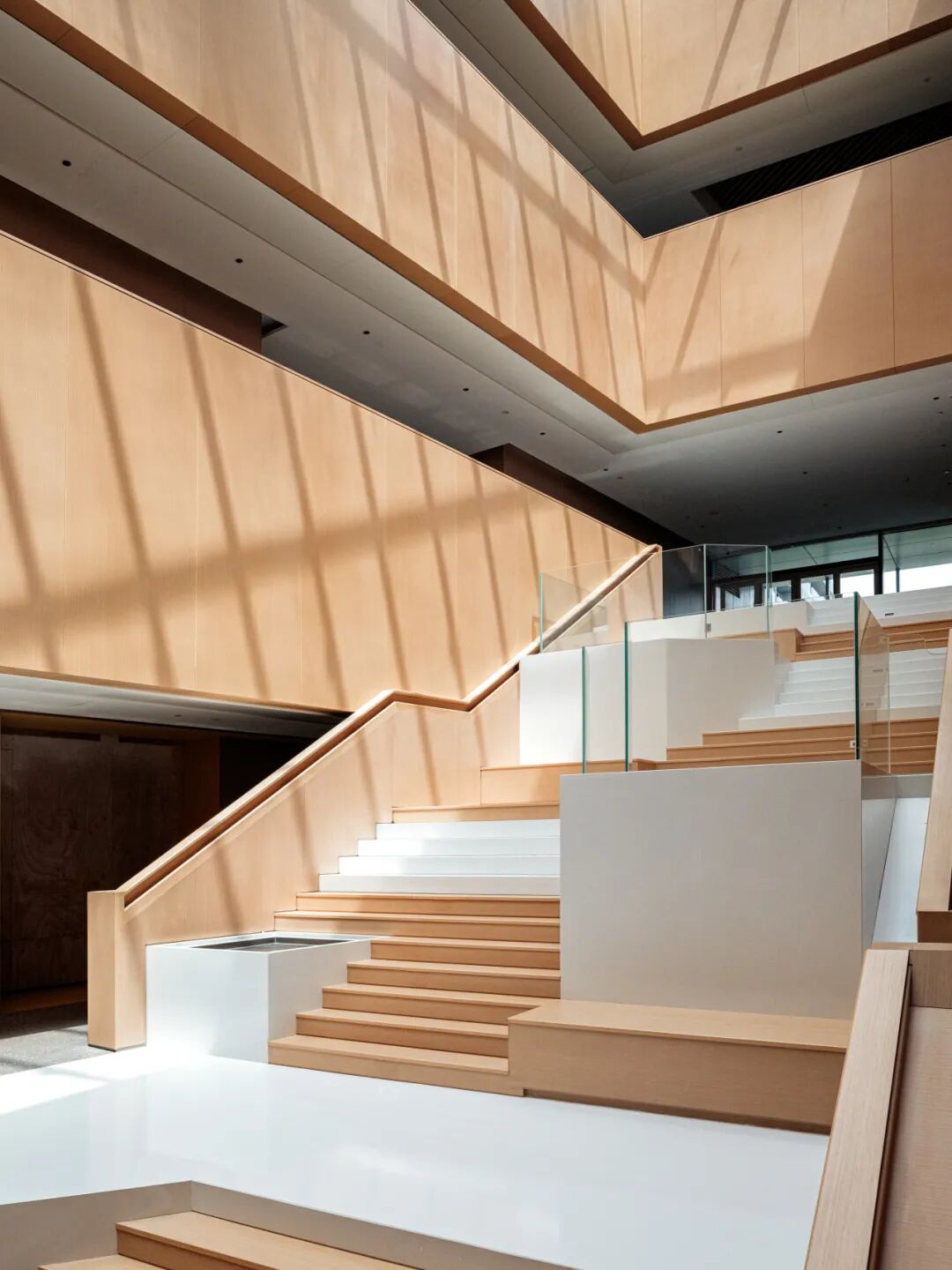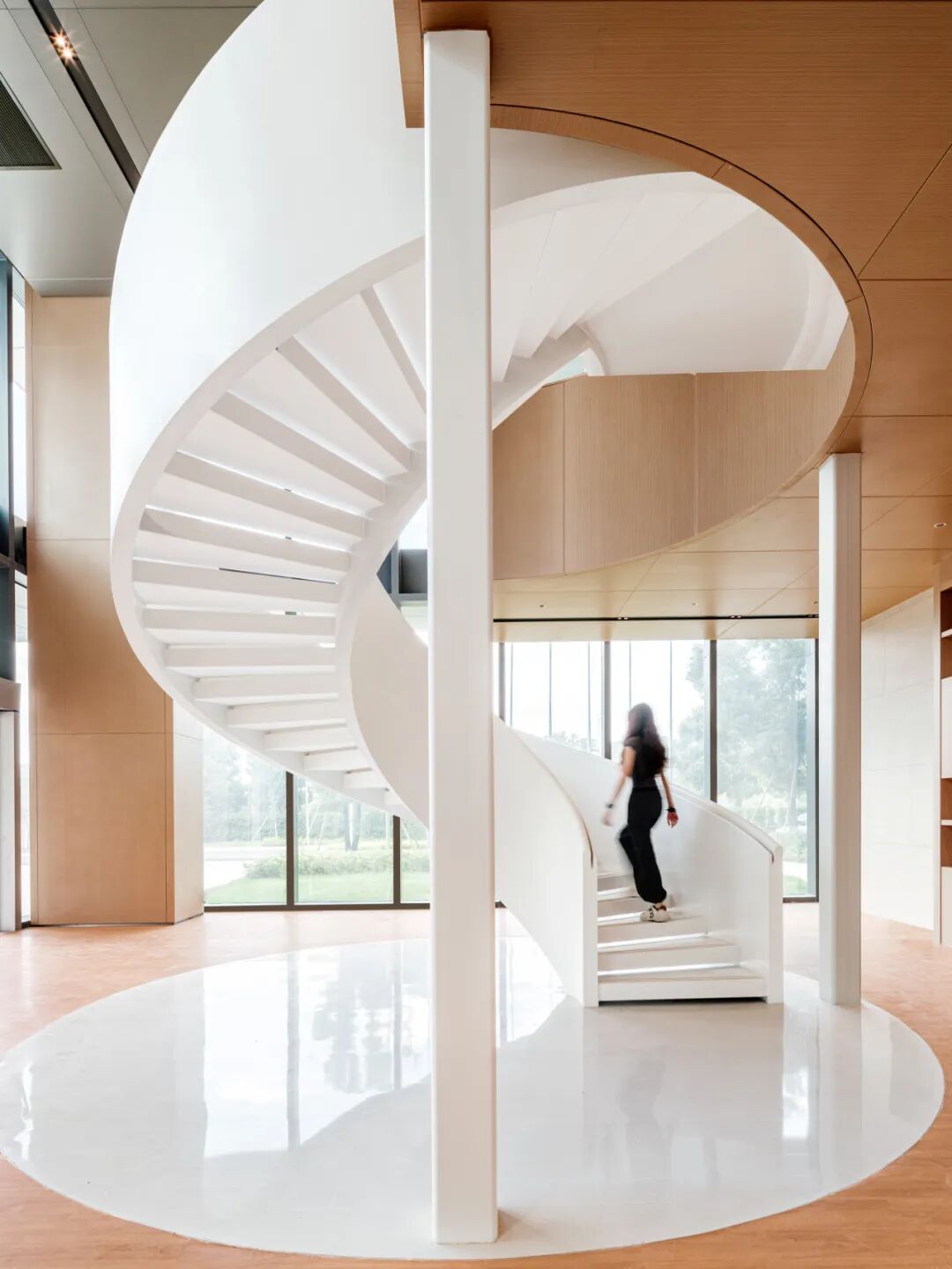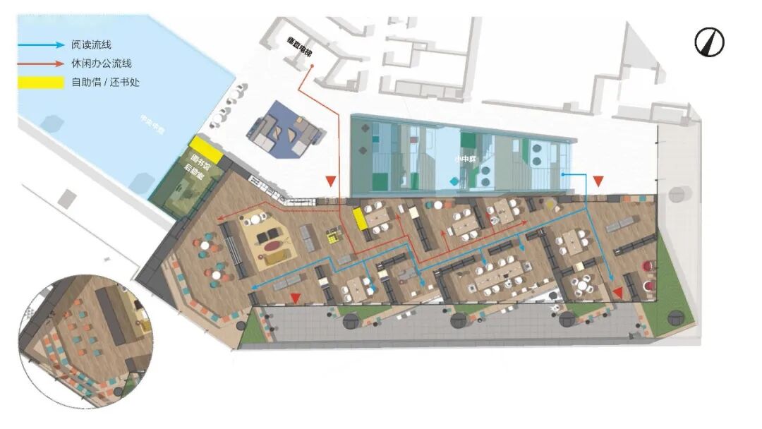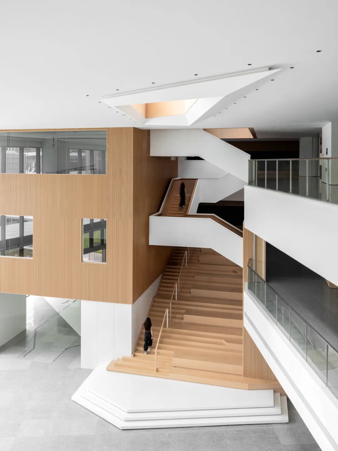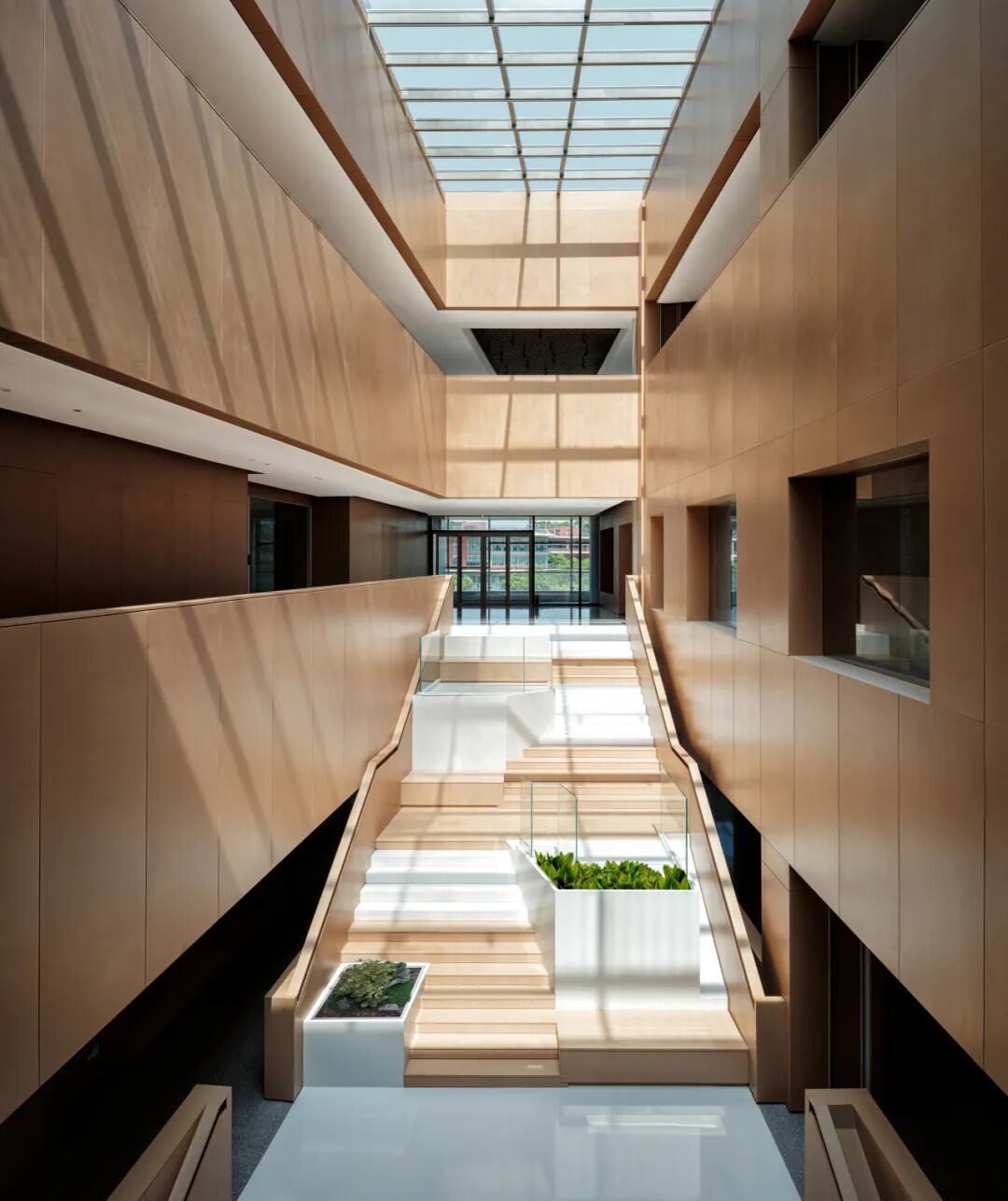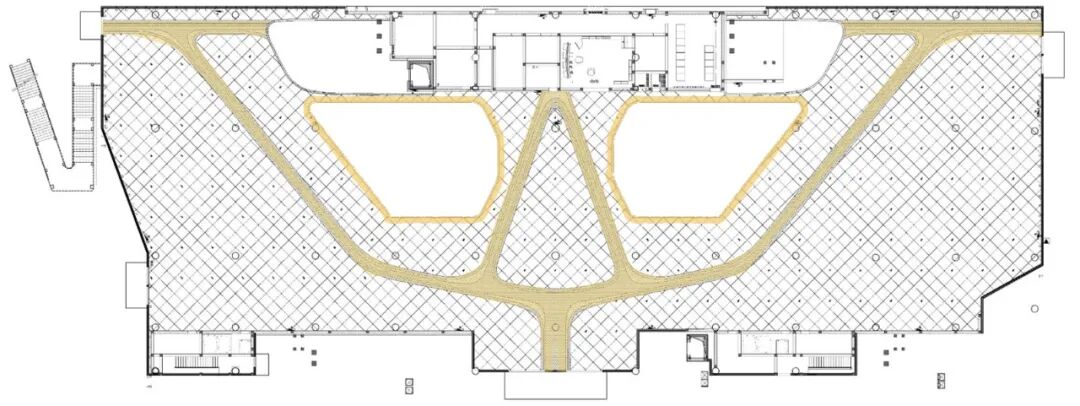 松山湖国际机器人产业园位于广东东莞松山湖,设计面积约28000平方米,整个园区作为一个孵化基地,设计以打造一个创意加速器为核心理念。通过玻璃、木材等材质及色彩突出空间层次,利用几何造型和光影视觉效果强调“共享”“创意”和“休闲”的空间特征,通过置入不同的共享功能来打造工作?生活?休闲一体化的空间体验。知识生产渗透于丰富的日常生活之中,设计新型模式的空间也重新定义空间设计的内核。