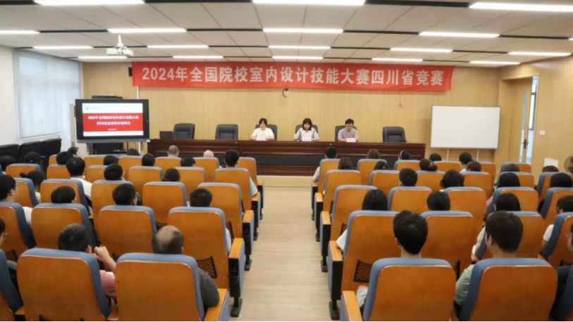 2024年9月26日至27日,由中国室内装饰协会主办、教育部职业院校艺术设计类专业教学指导委员会环境艺术设计类专业委员会联合主办、宜宾职业技术学院承办的2024年全国院校室内设计技能大赛四川省选拔赛在四川宜宾举行。四川省中职、高职院校的室内设计相关专业30名选手参加了此次比赛。赛事说明会在宜宾职业技术学院鲁班园多功能厅举行。宜宾职业技术学院建筑与环境学院院长郭莉梅、宜宾职业技术学院建筑与环境学院副院长张娅、中国室内装饰协会佘运思及参赛师生共同参加了此次说明会。
